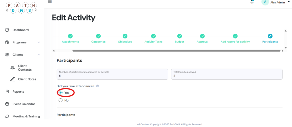 It is essential to document all attendees when completing activity attendance so the system can capture accurate gender and age breakdowns for reporting.